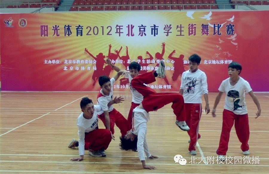 玛吉阿米社团在阳光体育2012年北京市学生街舞比赛现场的合影