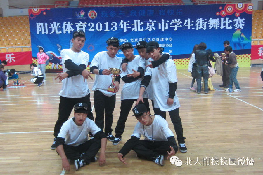 玛吉阿米社团在阳光体育2013年北京市学生街舞比赛现场的合影