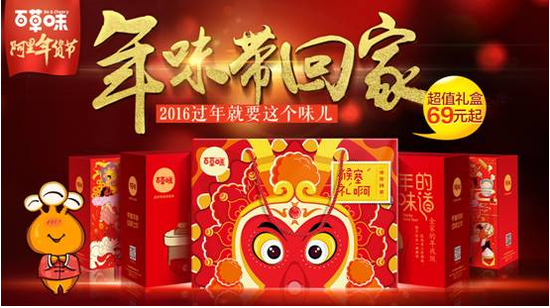 其实早在2014年的“年货节”,百草味打败了三只松鼠,取得全网销量第一、休闲零食第一、年货礼盒第一的“三冠王”。所以2015年,加大了宣传投入力度!百草味2015年年货主张是让“年货先回家”,鼓励消费者在过年回家之前在百草味平台购买好年货,直接让快递送回家。