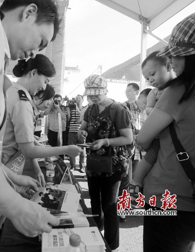 19日,在南沙港囗邮轮前,南沙出入境边检站举办“8·19”服务品牌宣传活动。 南方日报记者 刘力勤 摄