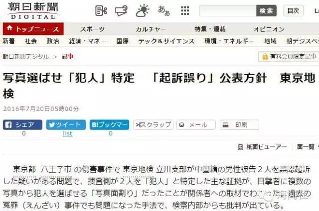 日本《朝日新闻》曝出此案中,警察使用了照片指认的手法