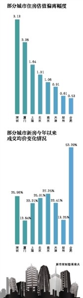部分城市住房估值偏离幅度、部分城市新房成交均价变化情况