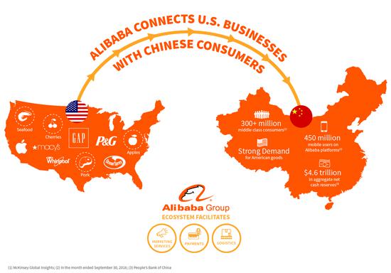 马云指出,中国正从制造大国转向消费大国,中国有三亿中产阶层,未来会增至五亿,将成为世界上最大的进口及消费市场,对美国是一个巨大的机会。他希望中美关系更巩固及友好,认为中美分别作为世界第一大及第二大经济体,能够进一步发展经贸合作,不单对中美,亦对全球的中小企及消费者很重要。