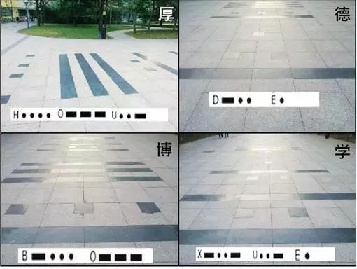 在北邮,有一段长达二三十米,宽两米左右的黑色地砖正是校训:“厚德博学敬业乐群”的摩斯密码。