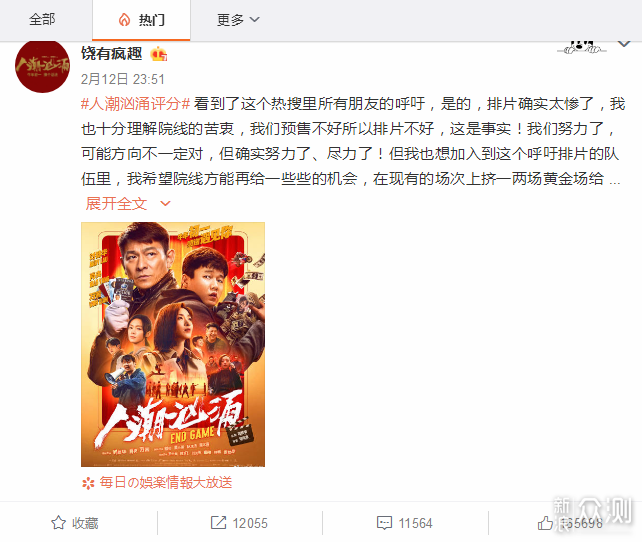 为了让《人潮汹涌》这部电影大卖,无论是导演还是刘德华、肖央、万茜等演员都曾卖力宣传,刘德华就通过直播、拍摄短视频等方式对《人潮汹涌》进行大力宣传,而导演饶晓志则直接发布微博求排片。