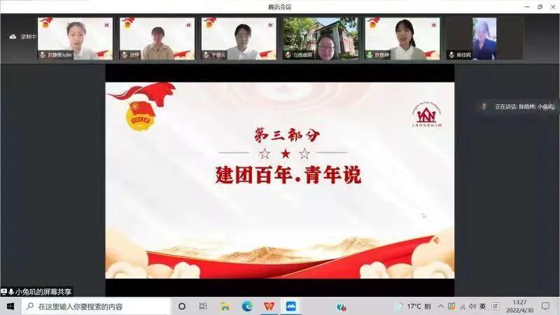 经过和龚敏园长的多次沟通,并征求了复旦大学国际文化交流学院多国留学生的意见,乌南团支部确认为人民教育家诵读九首近现代知名诗歌作品,并启动红五月乌南国际诗歌鉴赏月系列活动,拉开迎接建团百年华诞序幕。