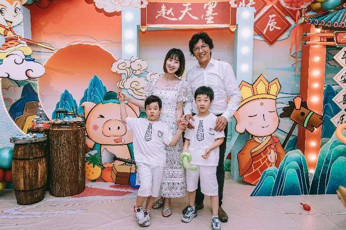 赵天墨(左一)和哥哥、父母一起朗诵《牧神的头》