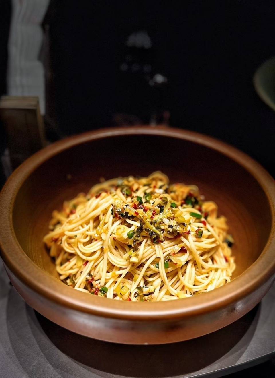 煮至七八成熟的碱面,更容易吸收汤汁,拌起来入口也更加爽滑。面条厚度均匀,色泽晶莹饱满,碱香四溢,嚼劲十足,让人回味无穷。非常有湖南特色的一道小吃。