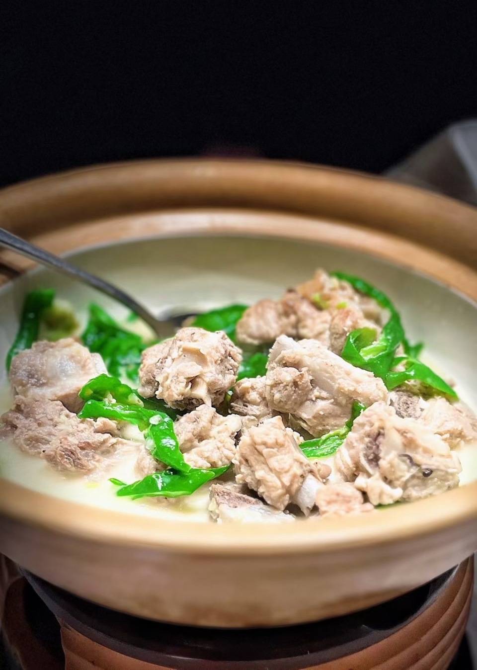 如果你想吃个不辣的湖南菜,我首推这一道。上菜之后要先吃排骨,排骨很香,滋味浓郁。青椒则是要再炖一会儿,完全软烂,直到浸满汤汁再吃,带点青椒微甜的肉香,不知道有多好吃。