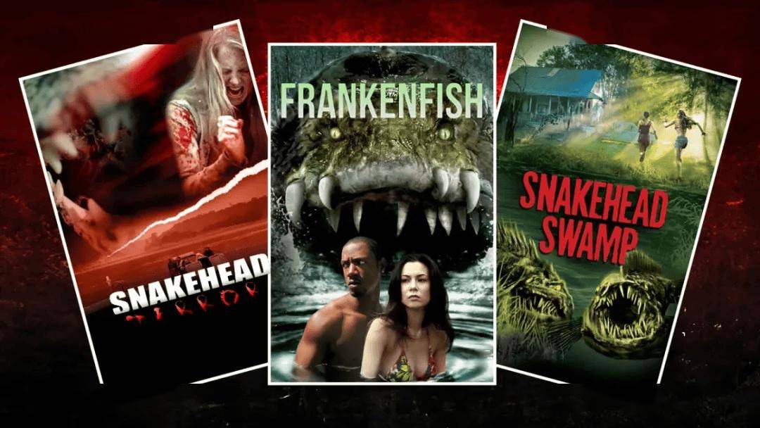 三部以乌鳢为原型的恐怖电影海报,其中《蛇头鱼:沼泽杀机》(Snakehead Swamp)是2016年的电影