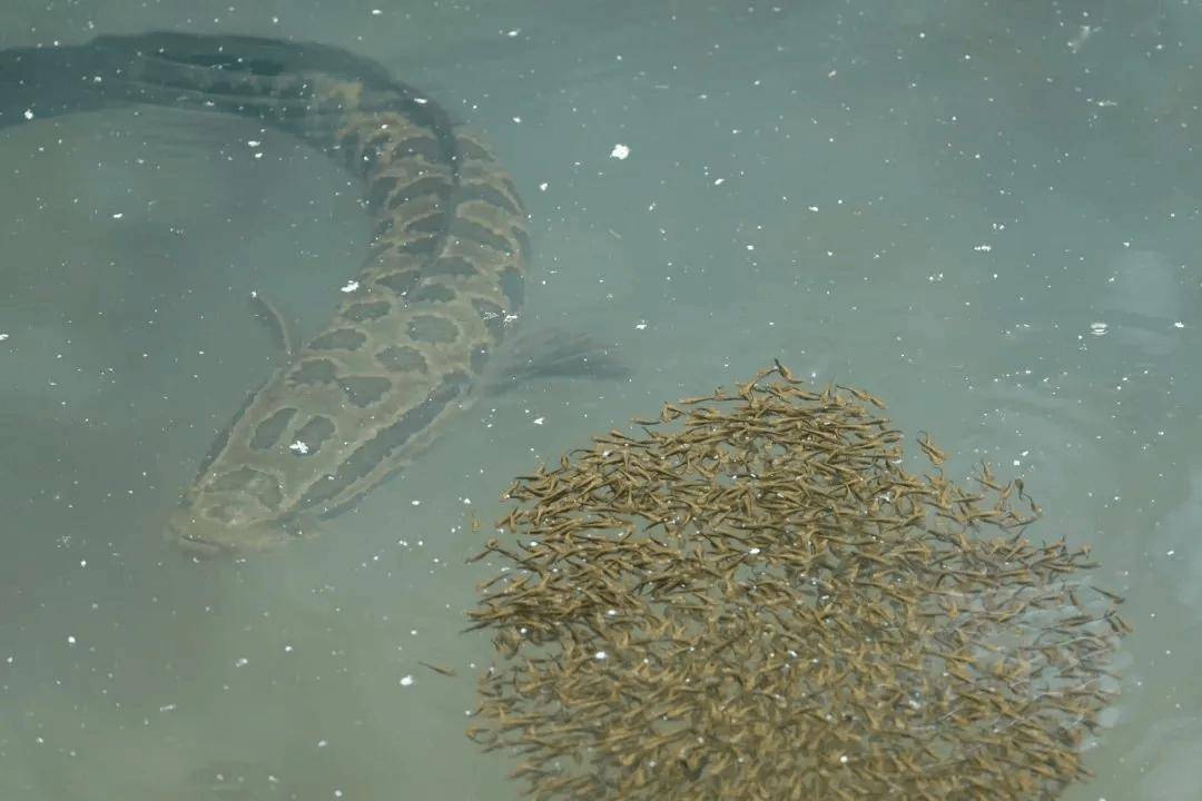 更夸张的是,乌鳢和其它鱼不一样,并非产个卵甩个籽便不管了,它们还有着在鱼类中颇为少见的亲代抚育行为。