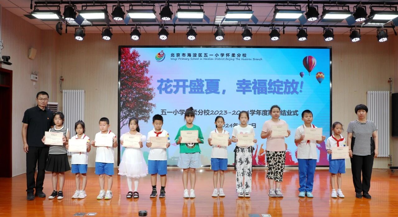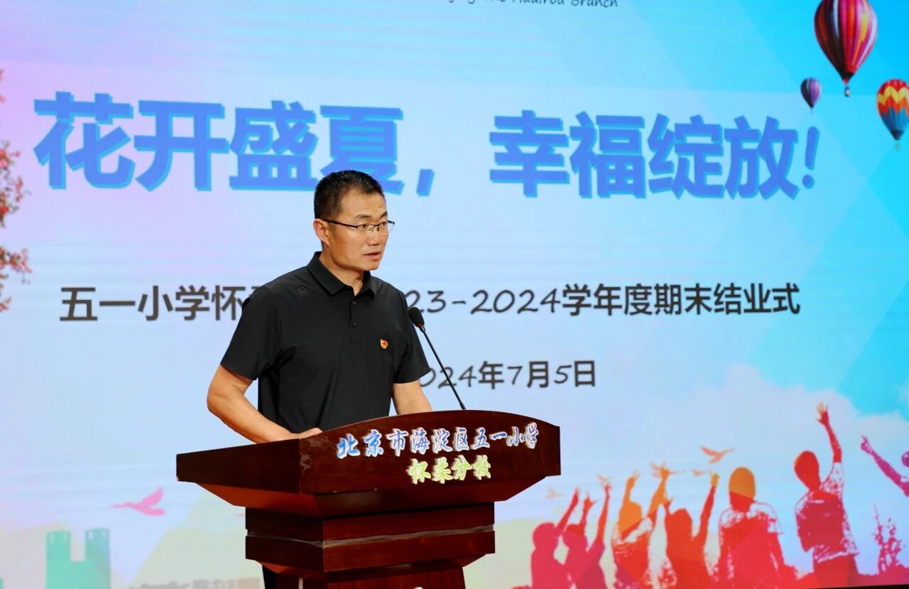 盛夏花开,硕果盈枝。紧张而又愉快的一个学期圆满落下帷幕!回望这一学期,从播撒汗水和希望的春天启航,在生机盎然的盛夏满载而归。五一怀分学子团结奋进、锐意进取,在成长的道路上又迈出了坚实的一步。7月5日上午,五一小学怀柔分校举行了以“花开盛夏 幸福绽放”为主题的2023-2024学年第二学期结业典礼,为本学期画上了圆满的句号。